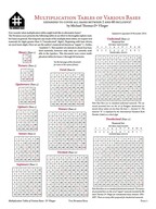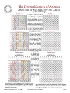Title: Analysis of Multiplication Tables Author: Michael deVlieger Year: 11B7z (2011d) Subject: Comparing the traits of the multiplication tables of various bases. The optimum number base may be more or less attributable to a number’s prime factorization. The behavior of a number base’s digits, from periodicity in the multiplication table to regularity in fractions, is governed by the number-theoretical relationships of each digit to the base. |