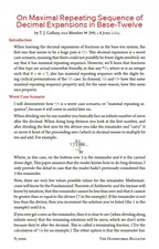 Title: On Maximal Repeating Sequence of Decimal Expansions in Base-Twelve Author: T. J. Gaffney Year: 11B6z (2010d) Subject: Exploring dozenal repeating fractions, especially sevenths. Mr. Gaffney examines the “worst case scenarios” of dozenal repeating fractional expansions, especially that associated with the sevenths. |
