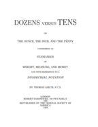 Author: Thomas Leech, F.C.S. Year: 10B6z (1866d) Subject: Defense of dozenal notation for arithmetic, weights, measures, and money. Originally published in 10B6z (1866d), this is quite probably the first modern-era, serious, and full-length exposition of the dozenal system ever written. At over 100z (144d) years old, it’s remarkable how well this work withstands the test of time. Many of the Leech’s practical suggestions aren’t really applicable to our time. However, as a discussion of dozenal remarkable in its completeness, it is still an interesting read. |