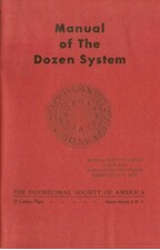 Title: Manual of the Dozen System (MODS) Author: Dozenal Society of America Year: 1174z (1960d) Subject: Basic introduction to dozenal mathematics; Churchman's metric system; tables. This is a classic manual which was distributed to Members and interested corresponders, which contains descriptions of various basic dozenal concepts. Tables of logarithms, exponents, and fractions are included. Also includes part of Henry Churchman’s dozenal system of measure and a section offering dozenal references. This document definitely shows its age, but still provides a useful introduction to dozenal counting and mathematics. |
