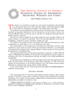 Title: Against the Metric System Author: Herbert Spencer Year: 1122z (1898d) Subject: A critique of the metric system (and the customary-imperial system) and a defense of dozenals. Written by Herbert Spencer during one of the earlier pushes toward the metric system in Britain, this piece attacks the metric system on a number of grounds. However, it does not defend the customary-imperial system; far from it. It identifies the major problem with both systems as their being decimal, and explains the superiority of dozenal arithmetic. |