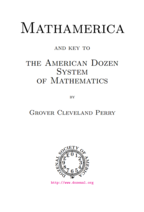 Title: Mathamerica Author: Grover Cleveland Perry Year: 1149z (1929d) Subject: A stridently patriotic argument in favor of dozenals from an interwar Protestant American viewpoint. Written during the period between the two World Wars, Mathamerica is almost more of a paean to the semi-imperialist Protestant American views of its author than to dozenals. However, despite its jingoism and provincialism, the work does contain much that could be interesting to dozenalists, particularly students of the history of dozenal and other non-decimal bases. Written in the years preceding our own F. Emerson Andrews’s more broadly-based work, Grover Cleveland Perry’s pamphlet Mathamerica reviews dozens, fractions, basic arithmetic, and basic geometry in his justification for and praise of dozenals. An interesting addition to the Dozenal Society of America’s library. |