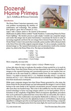 Title: Dozenal Home Primes Author: Prof. Jay Schiffman Year: 11B7z (2011d) Subject: An explanation of dozenal home primes. Prof. Schiffman uses duodecimal to produce a set of data for each positive integer less than one gross generated by taking the digits of the integer and multiplying these together. |