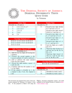 Title: Dozenal Divisibility Tests Quick Guide Author: Treisaran Year: 11B9z (2013d) Subject: Dozenal divisibility tests An invaluable resource for anyone who wants to become more adept with dozenal arithmetic, particularly mental arithmetic. This fact sheet puts together all the major divisibility tests of the dozenal system into a single, easy-to-learn and easy-to-understand package. |
