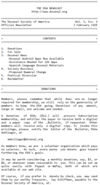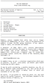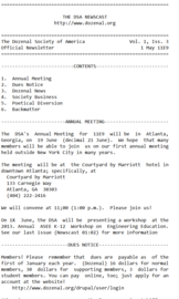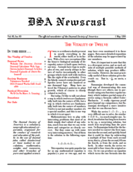 Title: The DSA Newscast, Vol. 1, Iss. 4 Date: 1 Jun 11B9z (2013d) Editor: Donald Goodman III Links; request for updated member information; Poetical Diversion: “O Dozen, My Dozen”. |