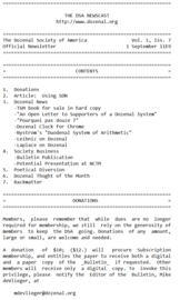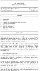 Title: The DSA Newscast, Vol. 3, Iss. Az Date: 2 October 11BBz (2015d) Editor: Donald Goodman III Featured article: “Educating in Dozens”; publication of Mathamerica; Poetical Diversion: “Dō! Dō! Dō!” by Gene Zirkel. |