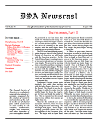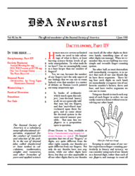 Title: The DSA Newscast, Vol. 3, Iss. 6 Date: 1 June 11BBz (2015d) Editor: Donald Goodman III Featured article: “Dactylonomy, Part IIVz”; announcement of 11BBz (2015d) annual meeting; memorizing pi; Poetical Diversion: “Dozenal Limericks”. |