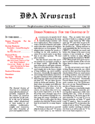 Title: The DSA Newscast, Vol. 5, Iss. 7 Date: 1 September 1201z (2017d) Editor: Donald Goodman III Featured article: “Annual Meeting, 1201z (2017d)”; release of new 1202z (2018d) calendars; Poetical Diversion: “We few, we happy few”. |