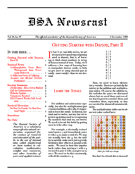 Title: The DSA Newscast, Vol. 4, Iss. 6 Date: 2 November 1200z (2016d) Editor: Donald Goodman III Featured article: “Getting Started with Dozens, Part I”; Digits podcast; Poetical Diversion: “For Future Use” (from the DSGB Duodecimal Newscast). |